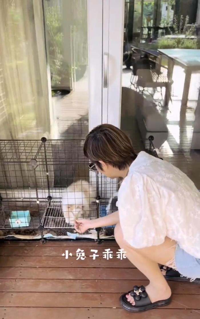 在院子里摘了一些草之后,杭天琪便回去喂兔子。可以看到,她家里大多是欧式风格的家具,全透明的玻璃门可以欣赏外面的风景,每一个房间的面积都很大。