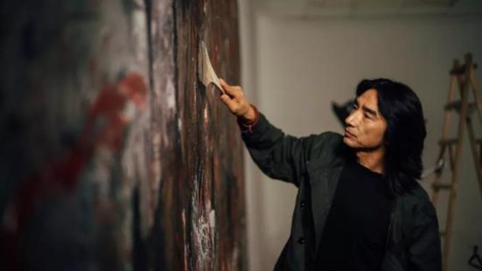 被命名为《一念》的新专辑包含7首歌曲,有趣的是,丁武为每首歌曲分别创作了1幅绘画作品,极端金属音乐搭配混合砂浆材料的抽象画,以这种形式对广大乐迷交出年底的作业,并不是“拍脑袋”的结果。生长在艺术世家的丁武,从小跟随父亲学习书法,对于绘画的学习也是伴随童年的记忆之一。早在2010年,丁武便以画家的身份出现在公众视野中,在一场名叫《嚎叫-丁武喊画》的展览中,丁武用鲜明的时代符号——绿军装、红领巾,将记忆中的童年呈现在大家眼前。如果说,成为艺术家是家人替丁武做出的选择,那么做一位音乐人,则是他自己的选择。几十年在音乐行业的摸爬滚打并没有让丁武放弃绘画,作为贯穿生命多年保留下来的一个习惯,画画这件事儿被丁武形容为“奢侈”,从具象的描绘到抽象的表达,他用了几年的时间,而想办法让这两件自己热爱的事情相遇,他用了半生。