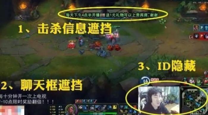 骚男也是如此,不过有网友发现每次骚男在游戏结算页面的时候就直接退出来,开始放录像,进游戏之前也会切成别的游戏画面,不让大家看到路人的ID,此外聊天框也会拖出到屏幕之外,就连游戏内的击杀信息也用文字遮挡住。