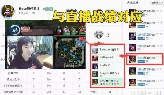 但是网友发现,这个账号的胜率其实并不高,按照骚男这把把凯瑞的局就不说隐藏分会有多高了,于是网友往后翻了一页,又发现了和直播时战绩截然不同的一个情况。