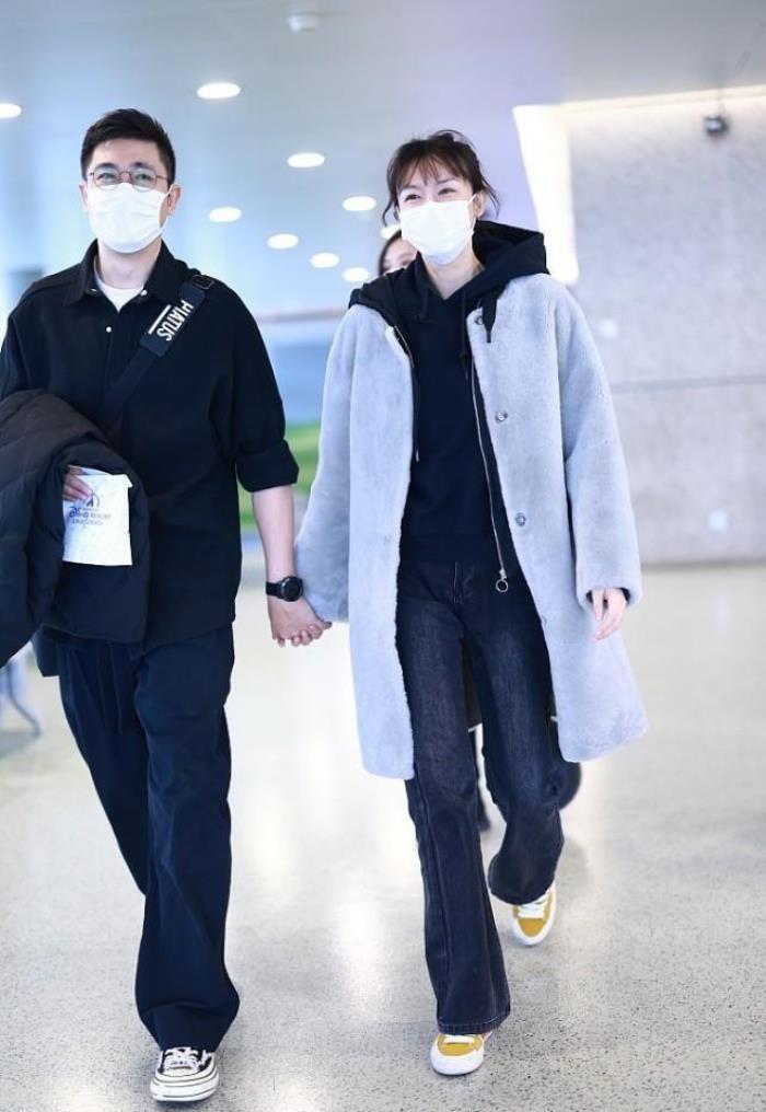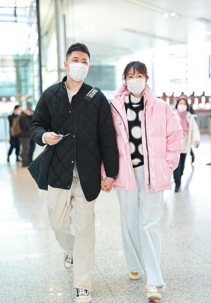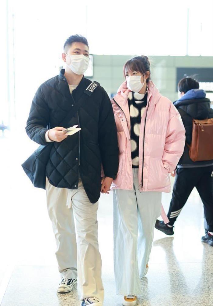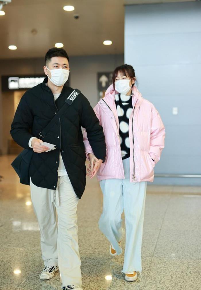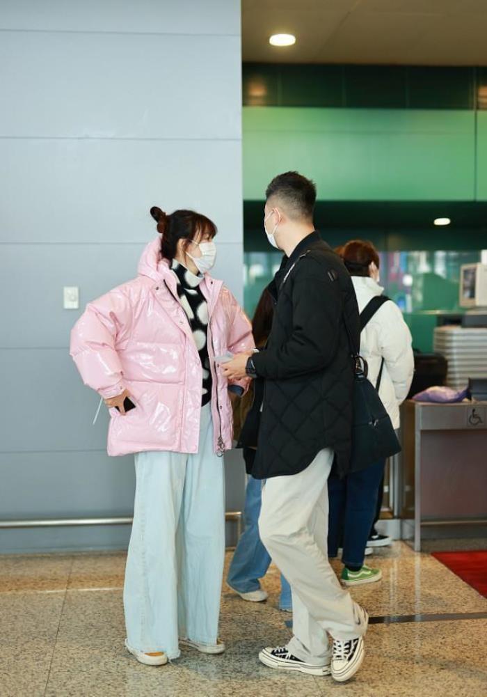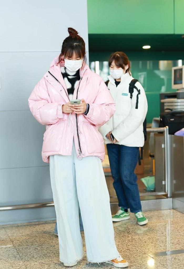 但是如果打扮得太过路人也会被闺蜜比下去,或者是让老公觉得没面子。所以李艾的造型就有着不错的借鉴意义,粉色羽绒服搭配蓝色阔腿裤,慵懒又自在。