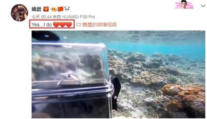 10月15日凌晨,魏晨微博晒出一段潜水视频,并配文:“Yes , I do。 ”宣布成功求婚女友,视频中,魏晨在水下手持一枚钻戒缓缓游向女友,女友则很惊喜捂着嘴。随后,魏晨工作室也转发微博:“恭喜老板!一生是你,永远幸福。”不久之后关于魏晨女友的话题就被网友们顶上了热搜,魏晨女友是谁?个人资料又是怎么样的呢?一起来看看。