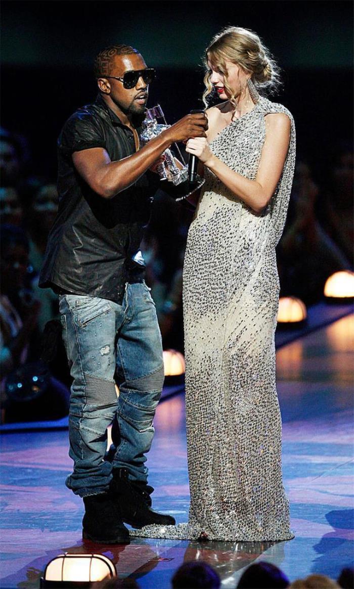 那时霉霉19岁,荣获了MTV2009年度女艺人MV奖,侃爷颁奖礼上抢过她的话筒,说碧昂丝才是最棒的女歌手,台上的霉霉和台下的碧昂丝都是满脸的尴尬。