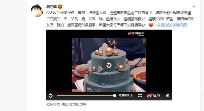 刘恺威看到这么多网友和朋友为他庆生,也留言感谢大家说:今天收到好多祝福,很开心很感谢大家…这周末就要话剧二巡首演了,跟伙伴们一起排练度过了充实的一天…又长一岁,又厚一层。继续投入,继续脚踏实地,继续加油!感谢一直陪伴的朋友们,新的一年愿望仍然很简单,希望大家每天都平安健康开心!