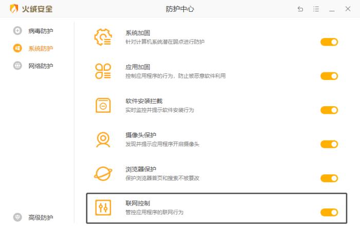 如果大家想彻底禁止它联网的话,那么我们可以通过防护中心的联网控制对应用进行网络管理。