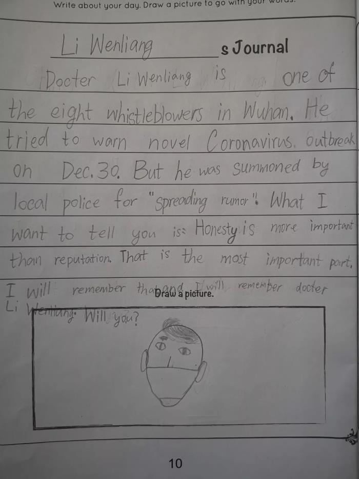 最后,想和大家分享一下我的朋友女儿,一个7岁的孩子在听完李医生故事后,写下的文章。