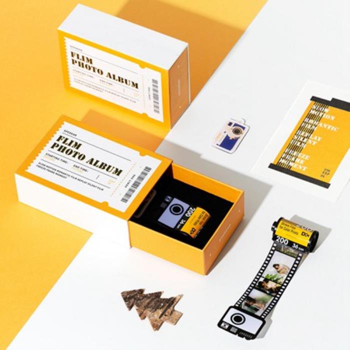 这是一款创意记忆复古胶卷相册,用旧胶卷的形式结合现代印刷技术及设计元素制作,将胶卷时代美好的温暖的回忆继续传递。把时光记录起来做成一份礼物,拉开这个胶卷,惊喜满满以及回忆慢慢展开被回放。无聊翻手机的时候,发现相册里一张张我们的照片。记忆翻涌,有些恍如昨日,有些已经淡忘。旧时光好像是泛黄的胶片,记录着和你在一起美好的温暖的瞬间,那些如流水般流失的记忆,总让你流泪满面,有些瞬间,经历时没什么特别而是究竞谁在身边!时光是最奢侈的小偷,所以我想把记忆卷起来送给你!礼盒采用全新原创复古电影票礼盒设计,送给TA一部专属的FLM。适合表白、生日、纪念日、情人节等场合,送给女友、老婆、闺蜜等或者自己!