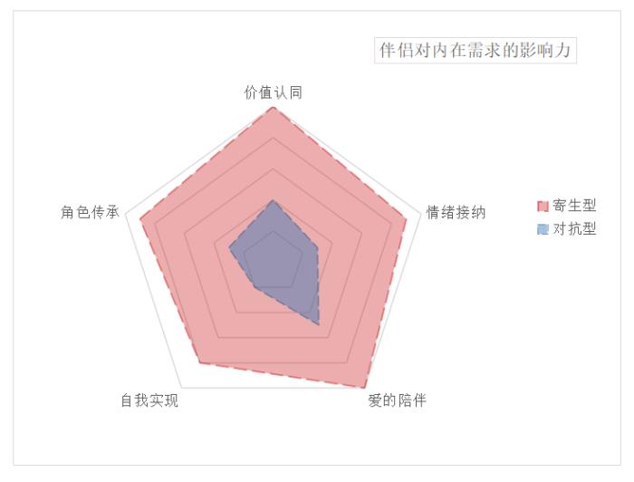 如果把女生的内在需求分为5个维度:价值认同、情绪接纳、爱的陪伴、自我实现、角色传承。那么寄生型伴侣的内在需求,90%以上都要通过伴侣来实现。·她最大的价值认同,来自于伴侣,所以很少有真心的朋友,在事业上也会比较糟糕。