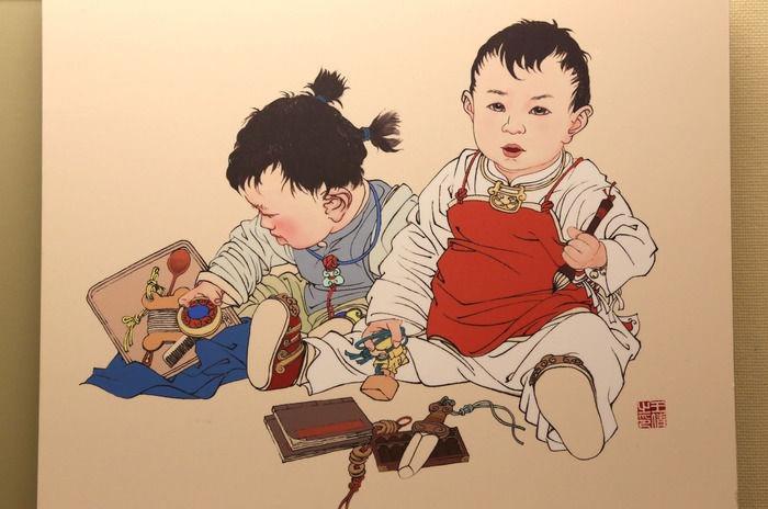 留在夫家的两个孩子,一个恰能沿着床边走、一个恰能坐起。两个孩子牵着母亲的衣服哭泣。发妻忍不住哭诉,你们两个新婚,却为何要让我们母子生别?