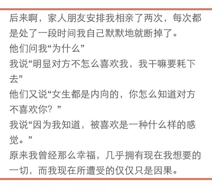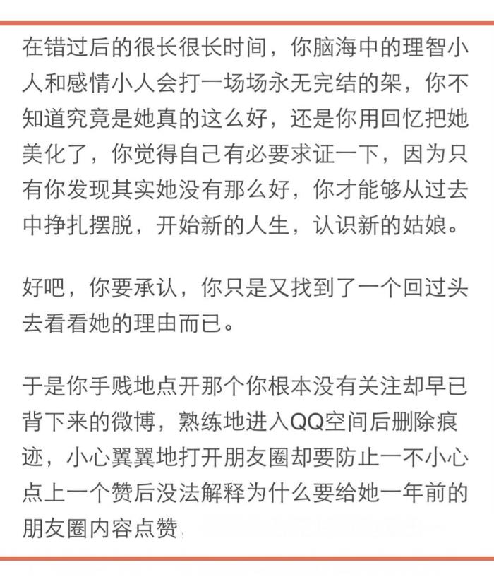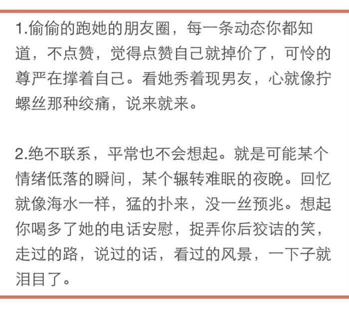 其实也不尽然,有些男人就是后知后觉,当初的身在福中不知福,导致了分手后才突然发觉,自己本可以一直幸福下去,而讽刺的是自己亲手葬送了这段感情。