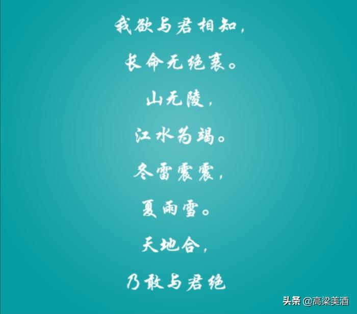 这句经典古诗,在很多人的脑海中都被冠以深情的标签,但原诗的上一句貌似更加动人:我欲与君相知,长命无绝衰!