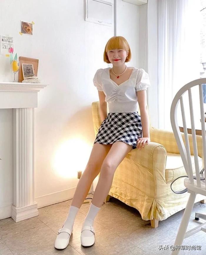 除了白裙子的经典,格纹元素也是经久不衰,少了一丝丝正式感,同时小花边得点缀也多了些趣味。