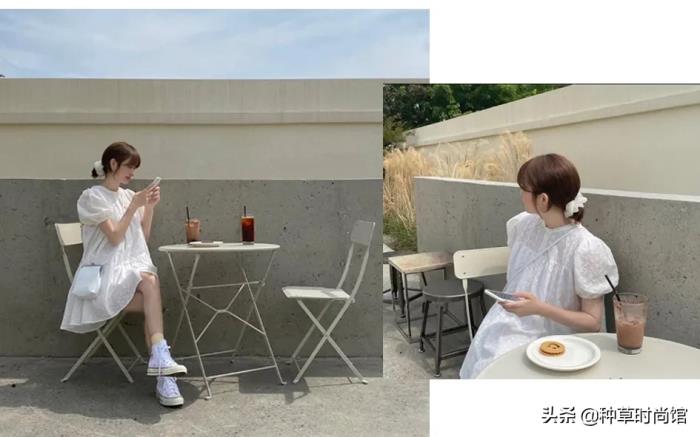 要说不会出错又显心机的穿搭选择,那非连衣裙莫属了。白色连衣裙是粒粒首选,没有那么艳丽跳脱,就是清透纯美的美人儿。