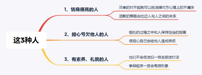 还有一种有素养、有礼貌的人,他们也会经常说对不起,当他们身上发生一些矛盾的时候,他们也会去道歉,他们不会像泼妇一样去撒泼打滚,他们懂得反思,如果自己真的错了,他们也会低头认错。