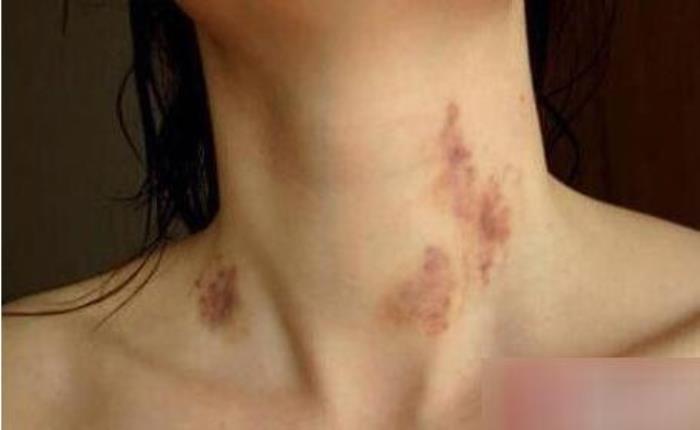吻痕与一般撞击、挤压造成的软组织挫伤相比,看上去比较浅,一般不会出现青紫色的瘀斑,而是从一开始就呈紫、红色,逐渐变淡,直至消失。