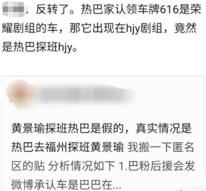 尽管当事人没回应但迪丽热巴粉丝很快进行辟谣,说这车就是热巴新戏《你是我的荣耀》剧组的车,一直就是这辆。还表示除了工作人员,没有别人探班,否认了恋情,也否认了黄景瑜探班迪丽热巴。