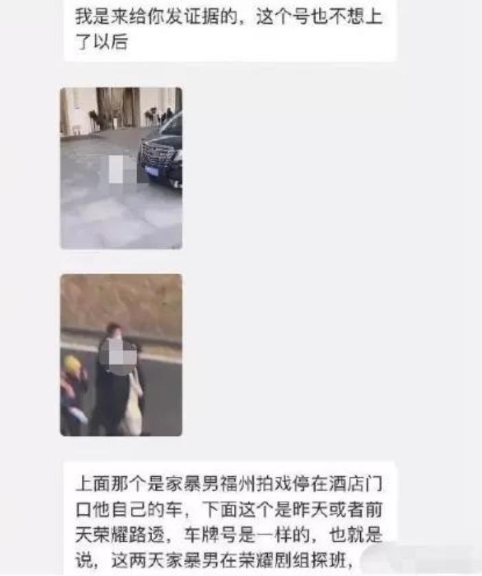 爆料的网友还晒出了证据称黄景瑜在福州拍戏时这辆保姆车就停在他住的酒店门口,这辆车的车牌号和出现在《你是我的荣耀》剧组那辆车也是一样的。