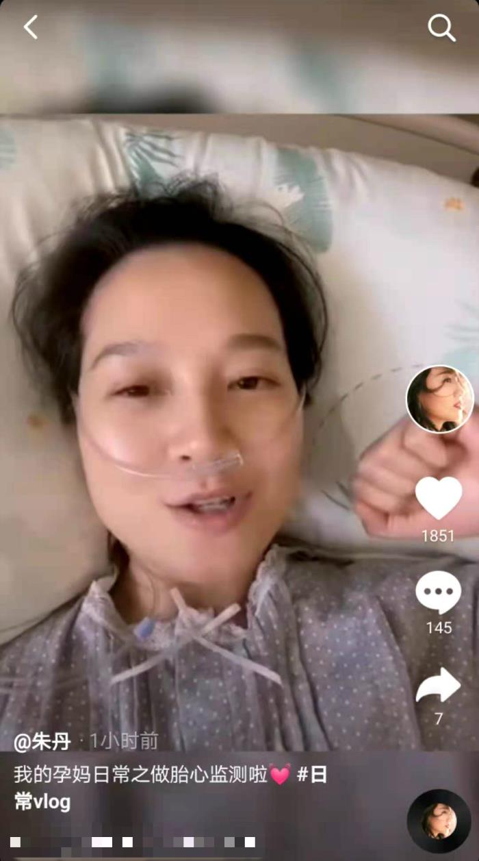 隔天,朱丹吸着氧气还不忘录小视频,再次晒出了自己的待产日常。