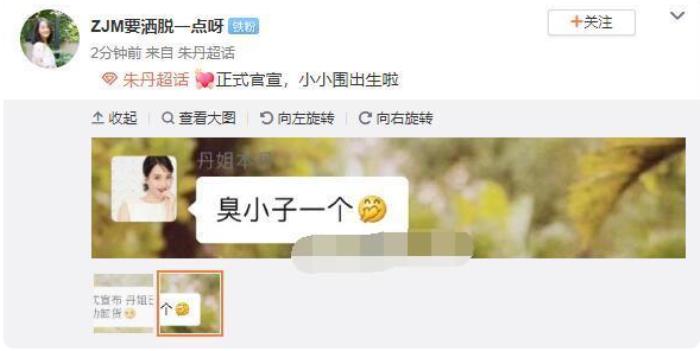 根据粉丝的爆料,朱丹在粉丝群透露,自己的二胎是个臭小子,大方分享了孩子的性别。