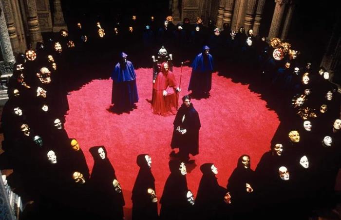 之后的那个神秘宴会其实不必深究,它仅仅代表着比尔欲望的一面。它可以是名流上层的一次宴会,也可以是对于自己一直蠢蠢欲动的情爱的一次释放,只不过这一次释放跟所有人的结局是一样的,比尔在此后的生活中充满了不安和怀疑,直到最后看见面具然后崩溃。