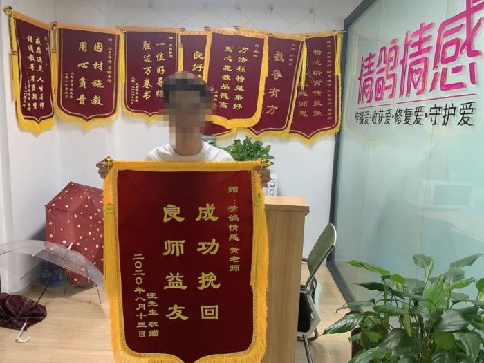 对于记者“如果没成功会不会退钱”的疑问,情感老师避重就轻:“如果不配合或配合不好的话,效果就不好。我们主要是提供情感咨询服务的,并不能保证100%成功。”随后,情感老师给记者发了最新成功客户送锦旗的图片。