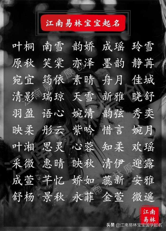 江南易林认为名字是人们相互间认识的第一步,家长不妨给自己的姑娘从唐诗宋词中起一个诗意文雅、温暖好听的名字,让宝宝潜移默化中培养出高雅的气质,成长为落落大方的“小仙女”。