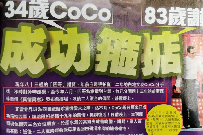 可见这次34岁的CoCo已经成功搞定了83岁的谢贤,虽然两人相差49岁的年龄差,再加上CoCo也不是长期定居在香港,但依旧没有阻碍两人感情的发展。