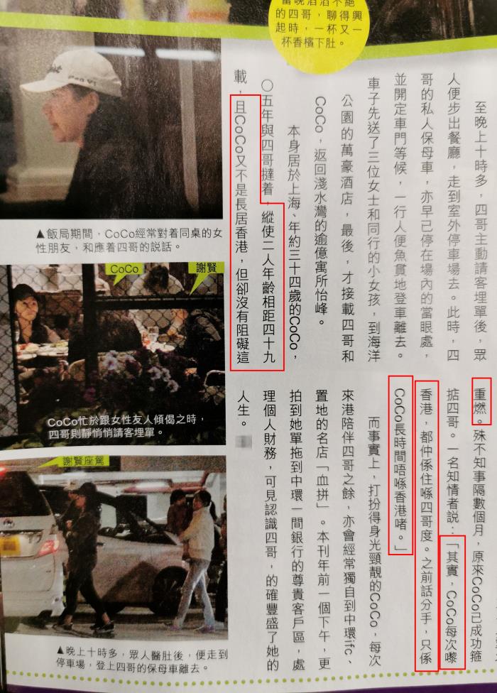 根据知情人透露,其实CoCo每次回港除了陪伴四哥之外,还会去名店血拼,每次来港的CoCo都住在谢贤的住所,之前说分手,大概是因为CoCo长时间不在香港的原因,如今隔三差五跑去陪伴四哥,难怪两人又旧情复燃了啊!
