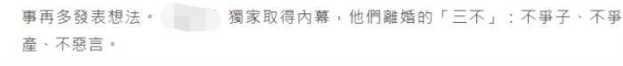 就在大家对于两人离婚原因及财产分配诸多猜疑的时候,据台媒报道,获得了黄晓明杨颖离婚的内幕,台媒指,他们离婚遵循了“三不”:不争子,不争产,不恶言。