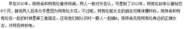 据柯有纶前女友爆料,陈妍希曾是第三者插足,才和柯有纶“秘恋”了8个月。