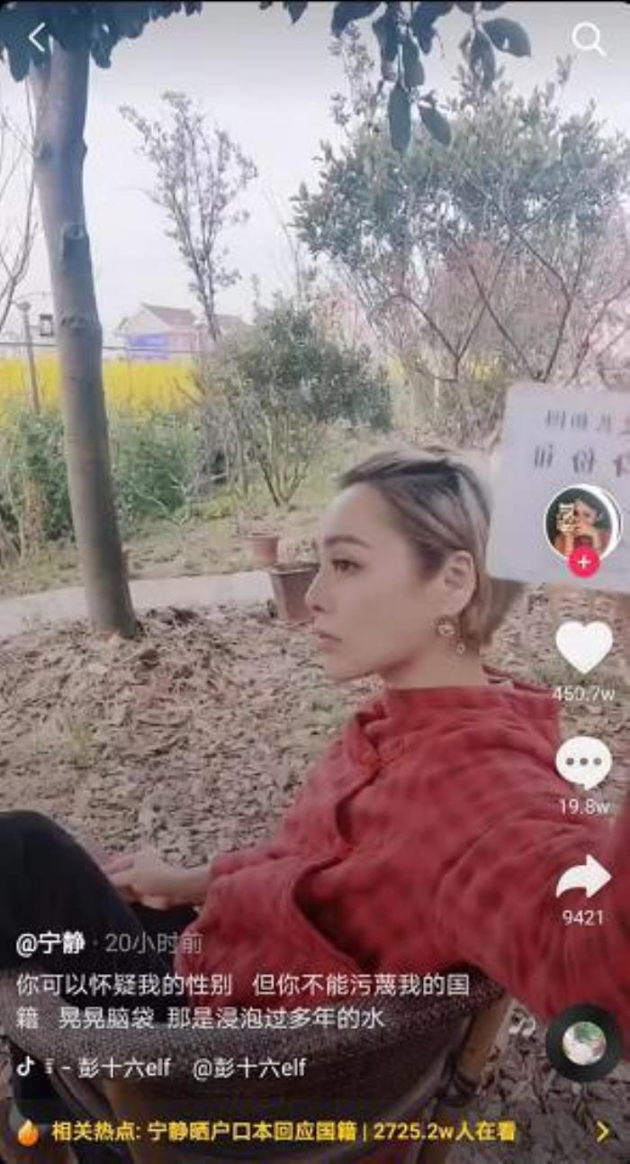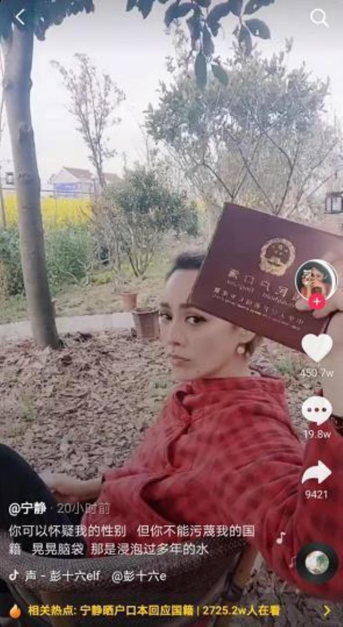 发博后不久,宁静又在社交平台上霸气晒出身份证和户口本,录视频的时候她眼神十分凶狠,表情也很严肃,一副非常不好惹的样子。
