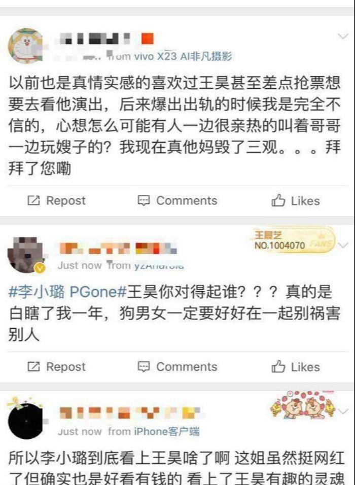 作为吃瓜群众,可能就是单纯觉得太反胃,但作为粉丝,尤其是那些当初相信李小璐和PGONE什么都没有的死忠粉,这下的打击,可谓不小。