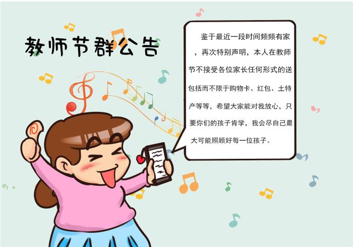 原来就在昨天,家长群突然更新了一条公告,是班主任写的,她说:鉴于最近一段时间频频有家长向我打听个人喜好,再次特别声明,本人在教师节不接受各位家长任何形式的送礼,包括而不限于购物卡、红包、土特产等等,希望大家能对我放心,只要你们的孩子肯学,我会尽自己最大可能照顾好每一位孩子。