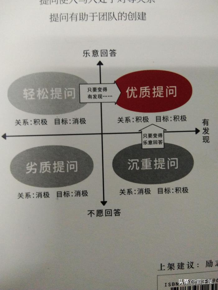 《学会提问》里有一句话说:“能让被问者不假思索就乐意回答,并能为其带来新发现的提问,就是优质提问。一个好的问题,一定是让提问者和回答者都有收获,是思想的碰撞,而不是一个草率的提问,换来一个草率的答案。