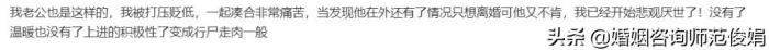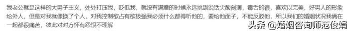 最近评论区有很多人都在吐槽自己的老公大男子主义,总是贬低打击自己,自己根本没办法和对方沟通,一起凑合得非常痛苦,可要离婚对方又不肯。