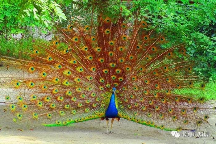 我们看到的大多数孔雀羽毛都是带有眼状斑纹的,并且有多种颜色组成,蓝,绿,黄,红等,当孔雀遇到攻击时,它们就会不停的抖动羽毛,发出沙沙的声音,伴随着一个个“眼睛”不停抖动,就会让敌人产生一定的畏惧。