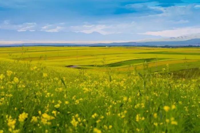 而且到了夏季,湖边大片大片的油菜花开的旺盛。黄色的花配着蓝蓝天,真的是太好看了!