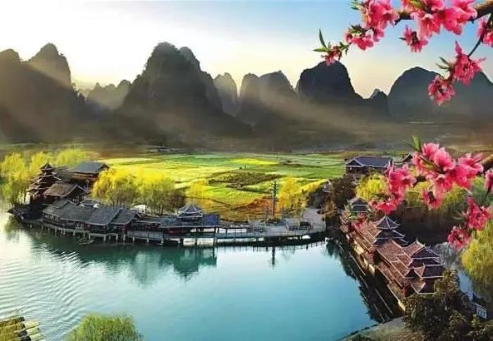 黄姚三江环绕,依水而居是黄姚的特色,溪河两岸排列着错落有致的岭南民居,清澈的姚江蜿蜒曲折穿行其中,一江碧水满载千里风情而来。
