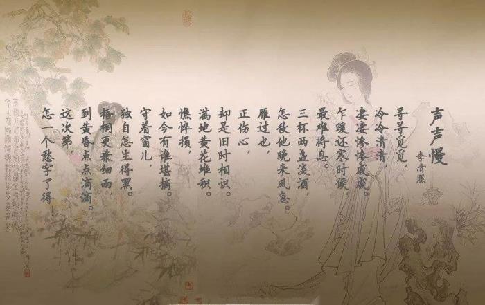 国破家亡,丈夫去世,境况极为凄凉,一连串的打击使作者尝尽了颠沛流离的苦痛,亡国之恨,丧夫之哀,孀居之苦,凝集心头,无法排遣。在一个秋日的凄凉傍晚中,李清照对着萧瑟的秋风独饮欲醉,写下了那首著名的《声声慢》。