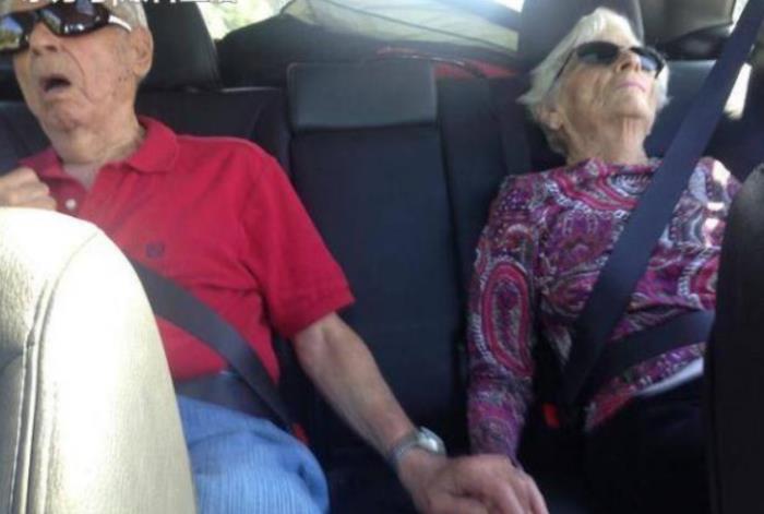 图中86岁和91岁的祖父母,就算打瞌睡也要手牵手!
