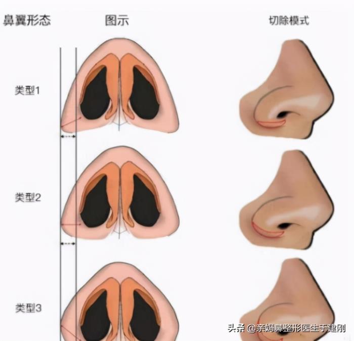在现代隆鼻外科手术中,常见的鼻翼缩小手术方法可以分为4种: