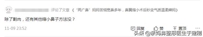 自从上次发出“两广鼻”的案例分享,有很多求美者们在评论区发出疑问,有询问自己是否属于“两广鼻”这种宽鼻翼类型,有询问如何改善宽大鼻翼,那么叔今天选择了一个比较典型的隆鼻求美者的提问:“除了切除,还有其他缩小鼻子的方法吗?”来进行专门的科普解答。