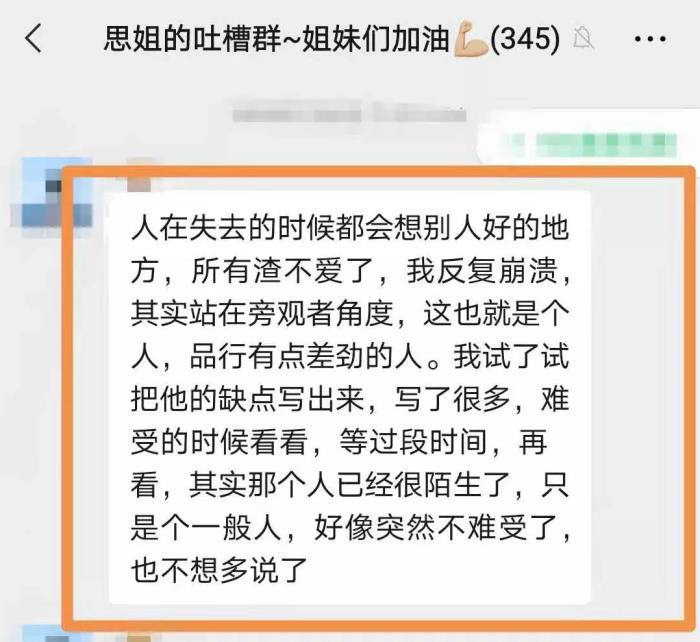 思姐不逼你立马接受。你可以选择网上倾诉,但日常生活中,一定要找到适合自己发泄的方式,哪怕是去健身房打一个小时散打,也好过自己憋着。
