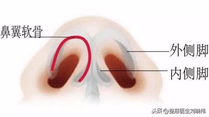 对鼻头影响最大的,就是鼻翼软骨,而鼻翼软骨,又分为内侧脚、中间脚和外侧脚。