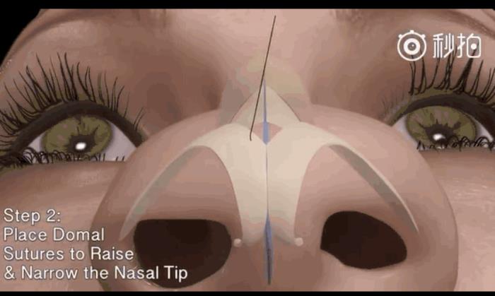 Step2:缝合收紧肥大鼻翼,使鼻尖狭窄