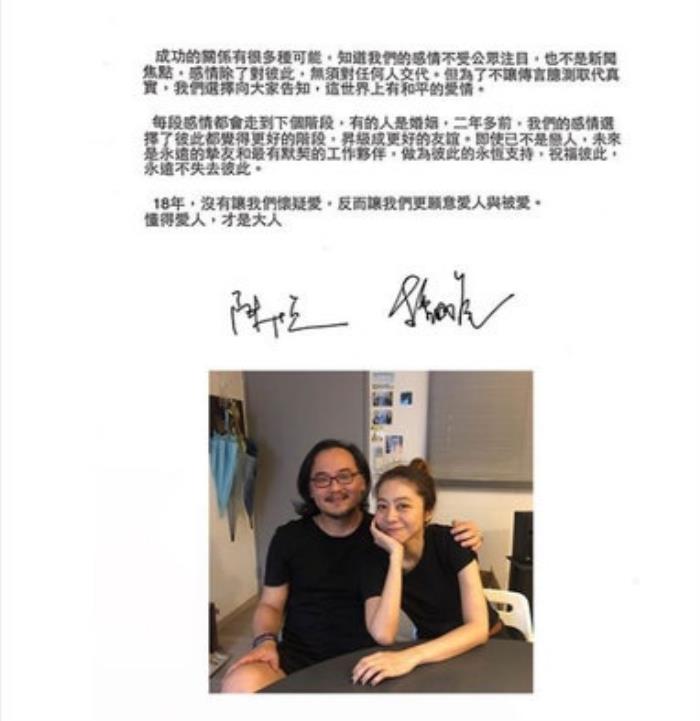 之前台湾歌手陈绮贞与相恋十八年的男友分手,大家纷纷表示不解,他们在大众印象里,陈绮贞美丽大方,身为制作人的钟虎也是才会洋溢,他们在音乐上琴瑟和鸣,理应相爱一生,想不到最后两人还是分手收场。