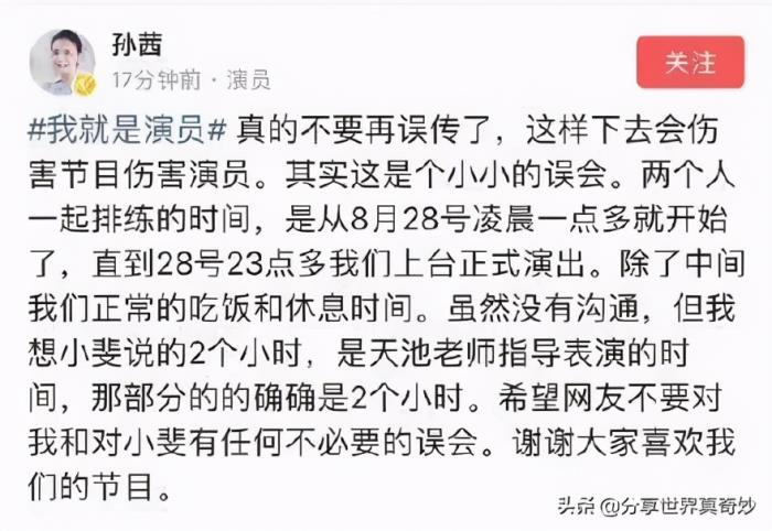 孙茜本人便出面发了微博,说只是误会,希望大家不要再伤害演员——