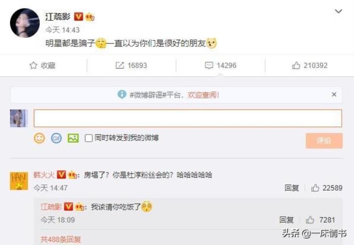 江疏影就发文吐槽杜淳是“骗子”,她一直以为杜淳夫妻是”好朋友“。