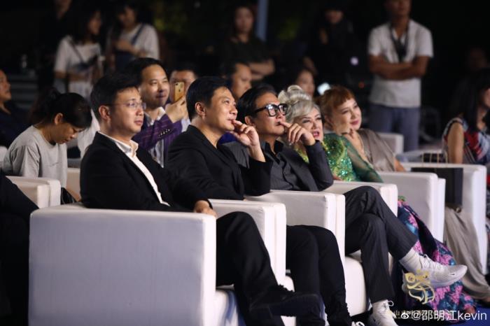 兄弟俩在台下神同步的动作也被拍了下来。不愧是亲兄弟啊,连动作都那么一致。