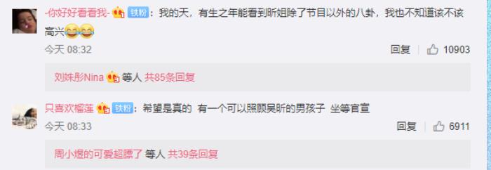 “希望是真的 有一个可以照顾吴昕的男孩子 坐等官宣。”